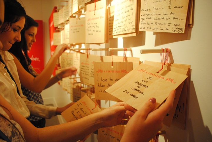As they say, what happens in Vegas stays in Vegas – but what if we could share with full discretion? Everyone of us has his own little secrets and ‘Confessions’, a public art project by american artist Candy Chang, invites people to anonymously share their confessions and see the confessions of people around them in the heart of the Las Vegas strip. Chang lived in Las Vegas for a month and turned her P3 Studio gallery into a contemplative place for people to share their confessions and being fascinated by the secrets others hide inside themselves. Inspired by Post Secret, Shinto shrine prayer walls, and Catholicism, people could write and submit their confessions on wooden plaques in the privacy of confession booths.